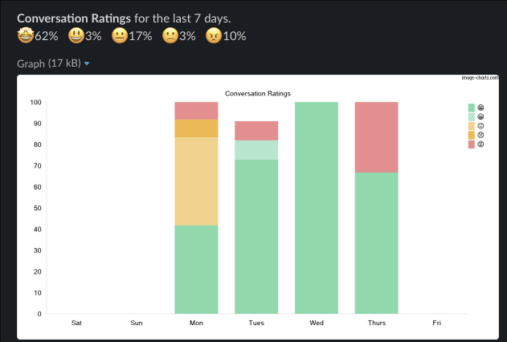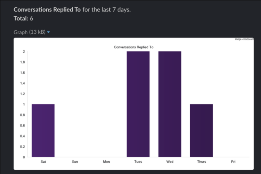 Supportman also sends weekly reports of the metrics that your team most likely cares about. Things like conversation volume, response times, and ratings.